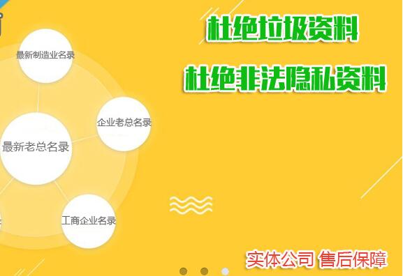 内容字段全面,最新更新,准确率高,骚扰率小,可按地区,行业分类,绝无重复,16年的大数据经验,经技术筛选,人工核对,确保数据精准!
